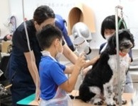 参加者は愛玩動物看護師体験、グルーミング体験(犬のシャンプー等)、野生動物学(動物が空を飛ぶ仕組みを解説)などのミニ授業を体験しました。
